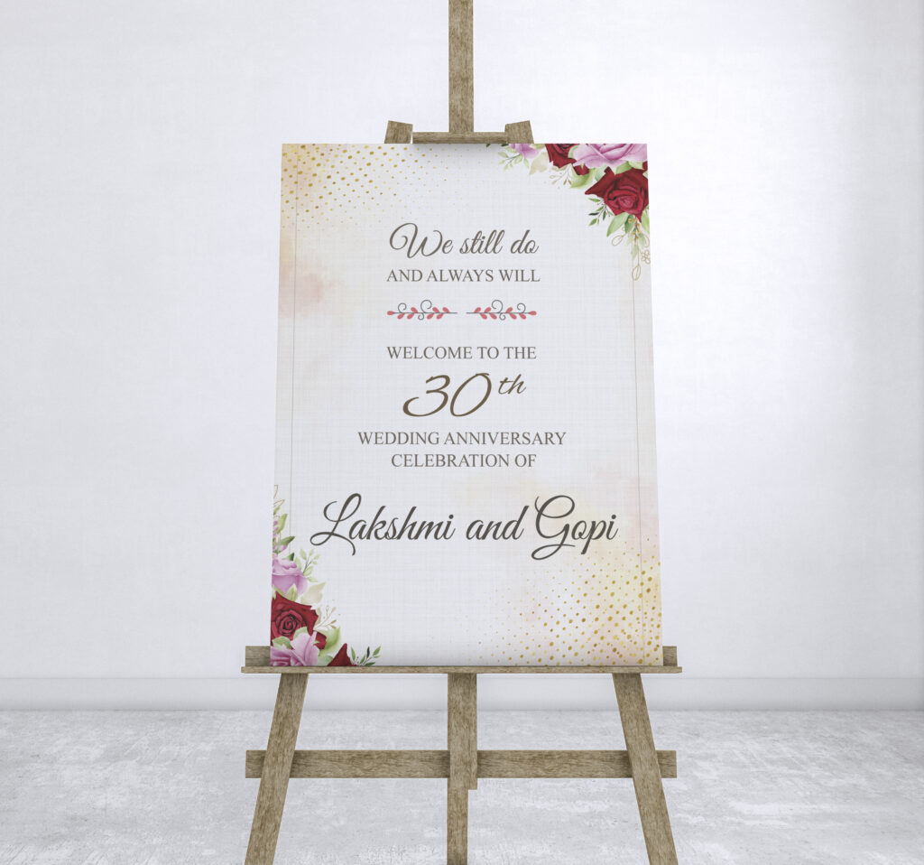 Welcome Boards  are trending, stylish and engaging that are used in all types of party and events like Wedding, Birthdays, Sweet16, Anniversary, Mehandi, Barath, Receptions, House warming, Valaikappy, Seemantham events, Private parties and many more.